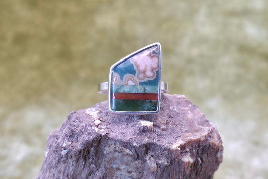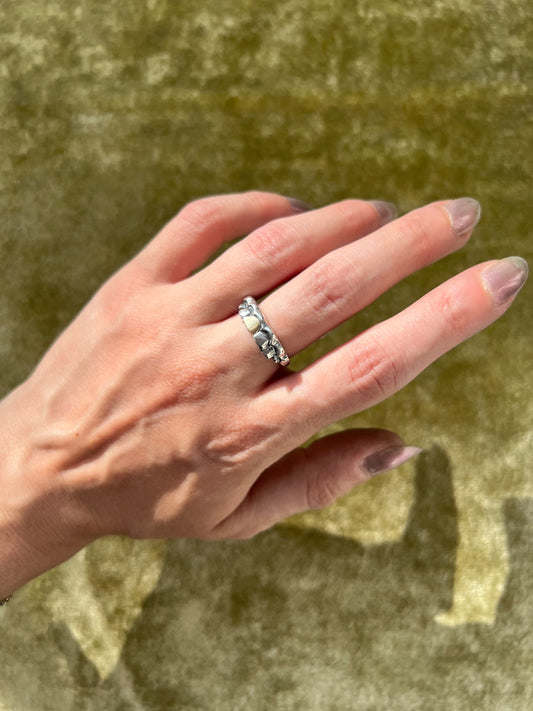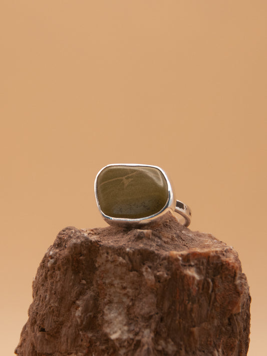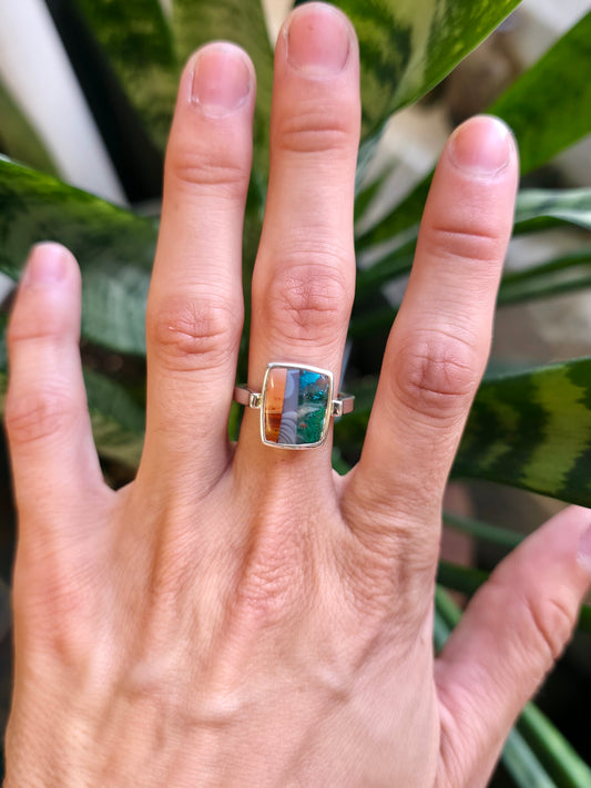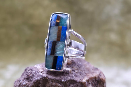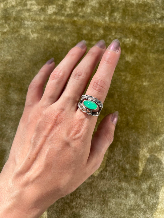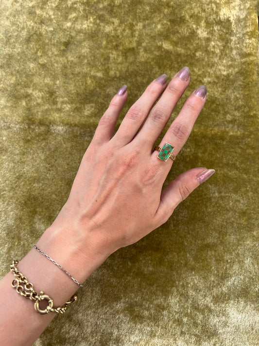 Chrysoprase and Rutilated Quartz Checkerboard Ring